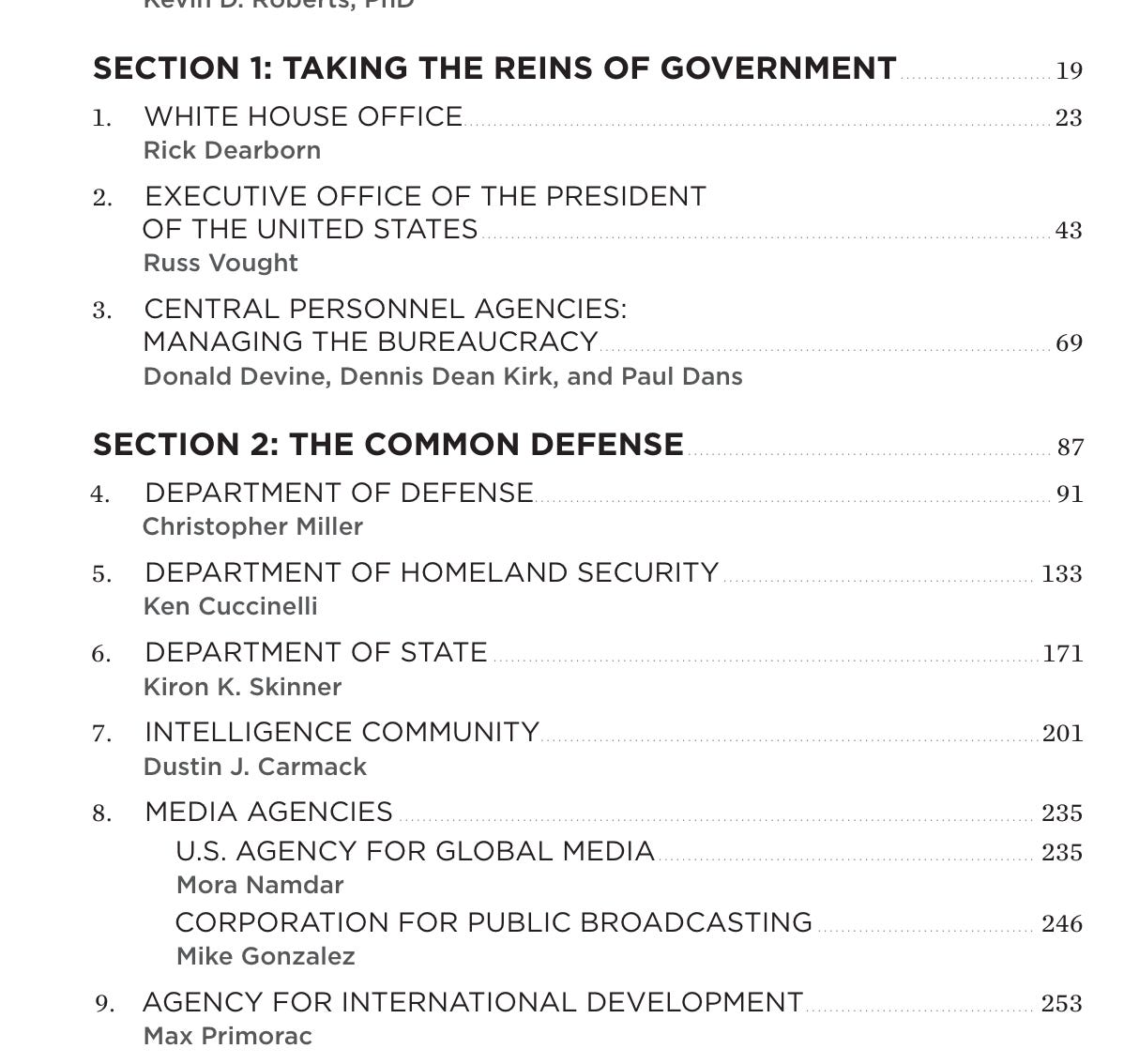 Many of the people working on the Project and many of the chapter authors are former Trump Administration employees or allies. Like Paul Dans, who directs Heritage’s 2025 Presidential Transition Project. The website says he’s responsible for organizing policy and personnel recommendations and training for appointees in the next presidential administration. “Prior to joining Heritage, Dans served in the Trump Administration as Chief of Staff at the U.S. Office of Personnel Management where he managed the federal agency in charge of human resources policy for the more than two million federal workers” and was appointed by Trump to serve as Chairman of the National Capital Planning Commission.