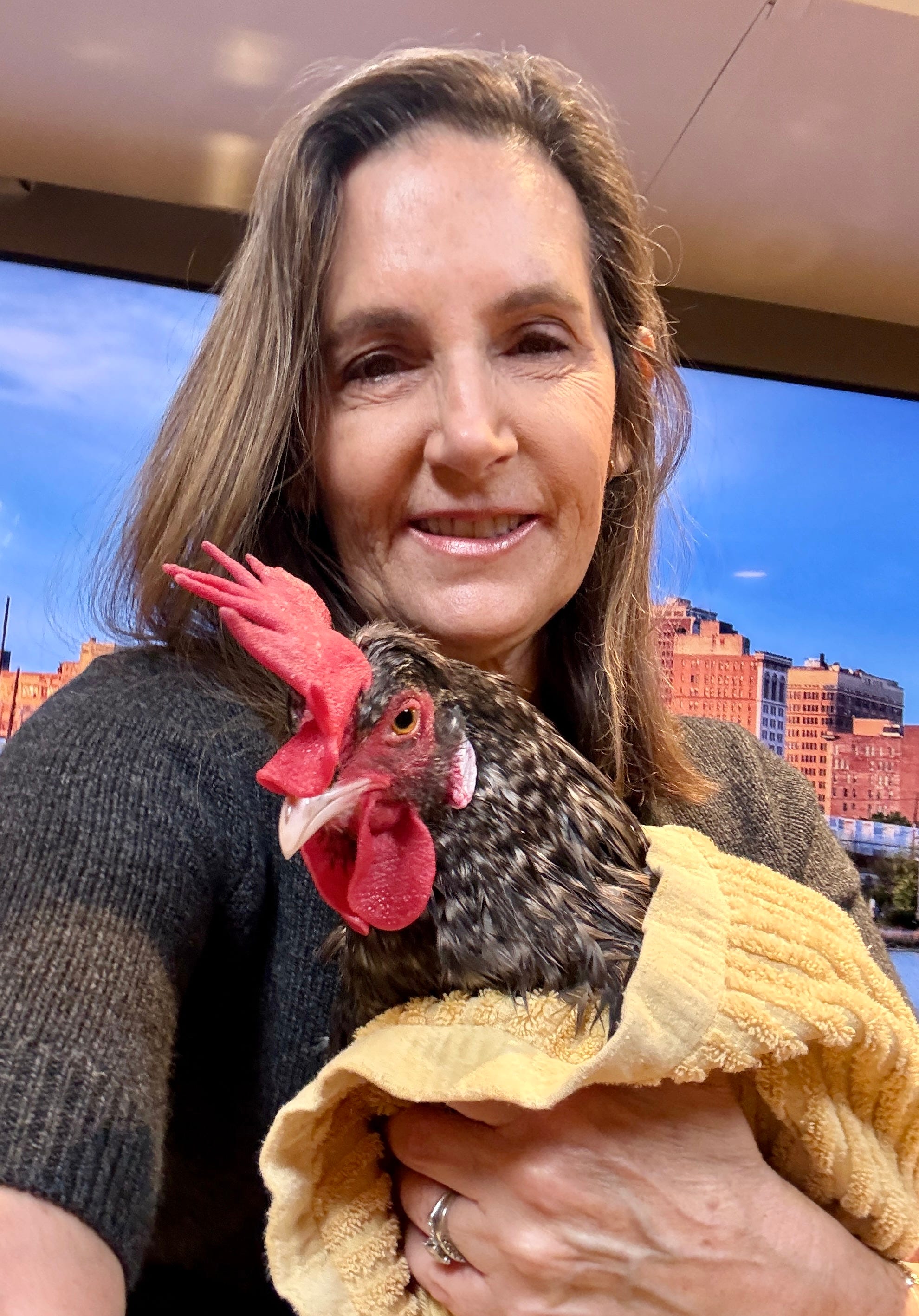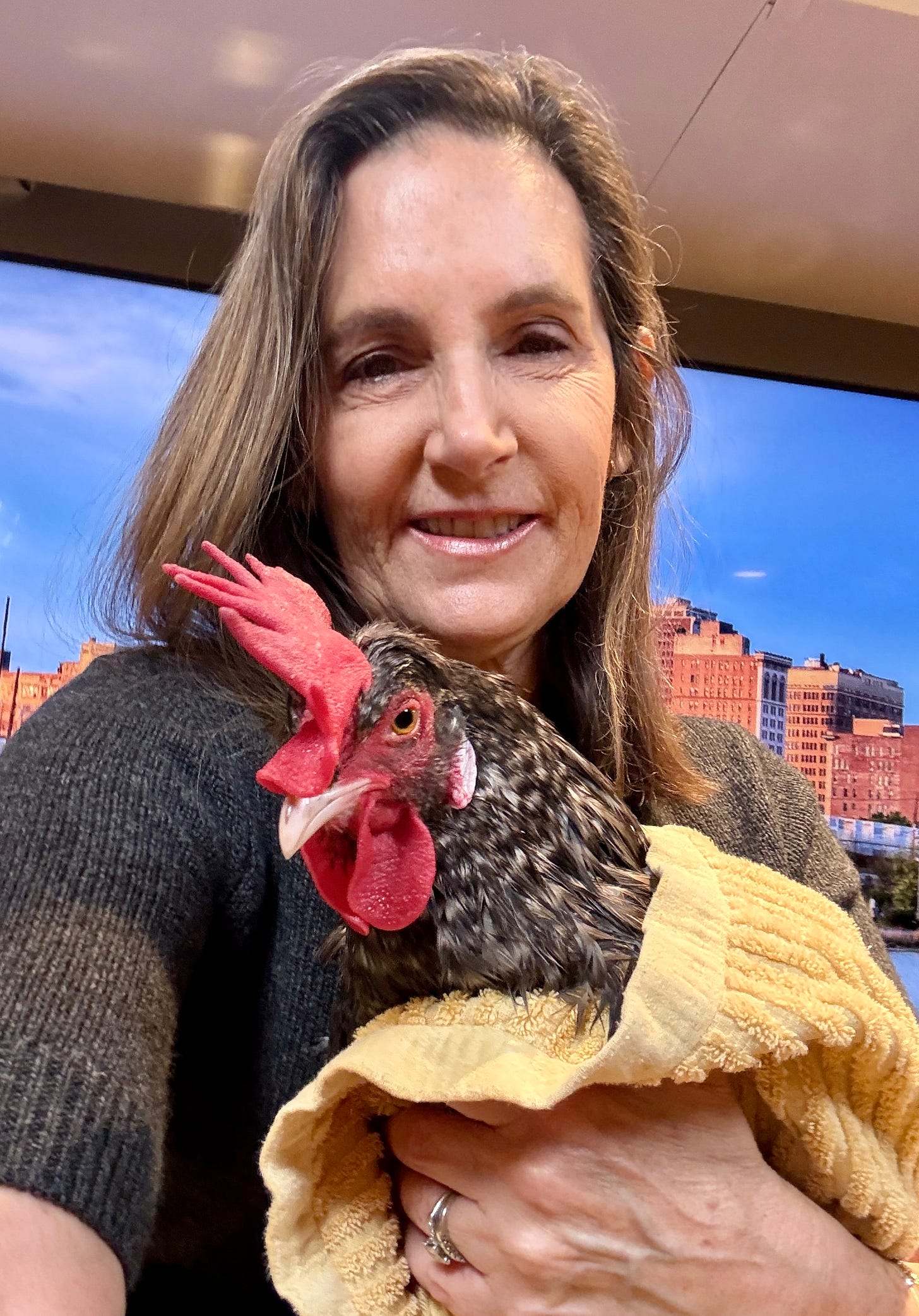 Today was a regular work day for me, but it had an unexpected start when I went out to feed the chickens and discovered Leeda had a cut on her foot, which really needed immediate attention. So, even though I was already dressed for TV, I brought her inside and we had a quick, pre-TV bath. (The control room asked if she was going to join me. Good heavens, no! She is very loud when she has an opinion about something.)